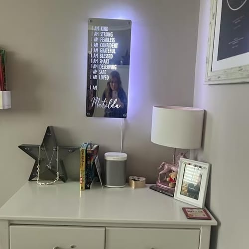 Da, este echipată cu o tehnologie LED care se activează automat atunci când vă apropiați sau la ore programate.